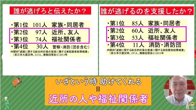 生き残った方の多くは、「近所の人が声をかけてくれた」「福祉事業所とつながっていた」人たちでした。