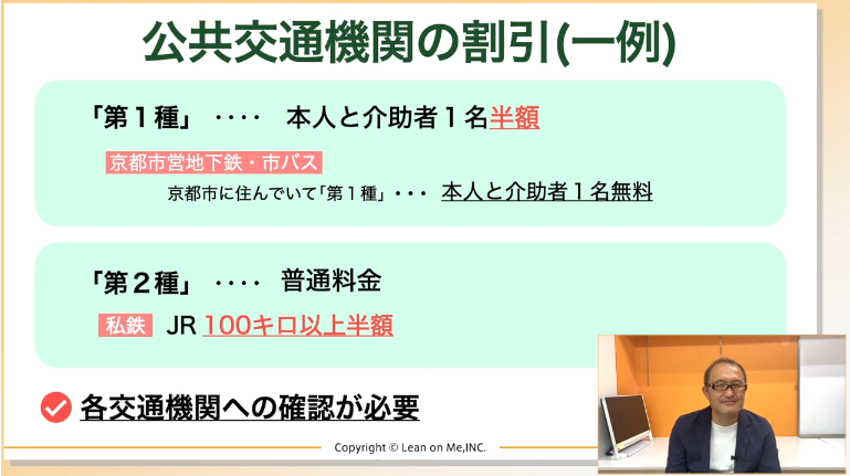 動画内でも紹介されていますが、京都市では独自の福祉乗車証制度があり、申請すれば市営地下鉄や市バスが「無料(または割引)」になるケースがあります。この場合、介助者の扱いも変わってきます。